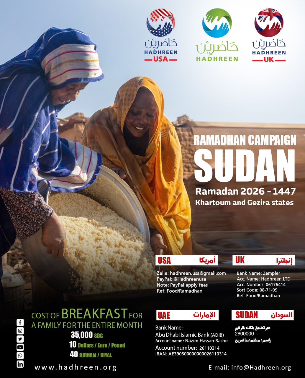 Hadhreen UK is an organization established under the laws and regulations of the United Kingdom. as an extension to the efforts of Hadhreen Sudan, a well-known entity dedicated to serving vulnerable communities, Hadhreen UK aims to operate at global standards while addressing the needs of underserved populations through sustainable development, empowerment, and humanitarian aid.