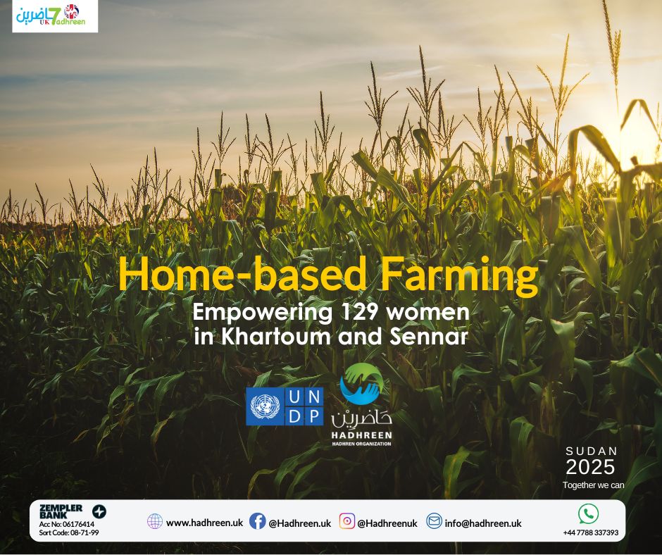 In collaboration with the United Nations Development Programme (UNDP), our sister organization, Hadhreen Sudan expanded its home-based farming initiative to empower 129 women in Khartoum and Sennar states to grow food within their own households.